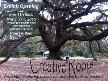 The process of creating each component of the art show has been a profoundly rewarding one. The developing of the film negatives that I took of the original installation on the tree was such a kind of miracle, that I feel as though everything was conspiring to save them. As though I could believe the Universe keeps a special eye on artists and their creations. These film roles sat forgotten for years undeveloped in my closet, not in a cool fridge as they should have been. And some of the original board members cared for them so much they egged me on to have them brought up to Tallahassee to be developed. They had the film processed and the negatives were kept by a friend after my relocation from Tallahassee to Miami, the city to which I had returned so that I could help take care of my grandmother. These negatives were kept until this spring of 2015 when I could make the prints for my exhibit. Seeing them lined up on the mantle place was a journey back in time.