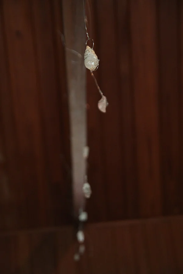 The final component of my exhibit was the new installation "Rain the Blessings Down". This community driven interactive exhibit is once again based on much of the effect of connection to things that we do not see. This project displayed a collection of crystals donated by the local community to be hung from the rafters of the historic home. The idea for this was inspired by a call to action from a Wisdom Keeper known as "Little Grandmother" to return crystals to the earth as an act of mindfulness and world blessing. She asked that we return minerals to the earth charged with our blessings because we have taken so many mineral resources from the planet.
