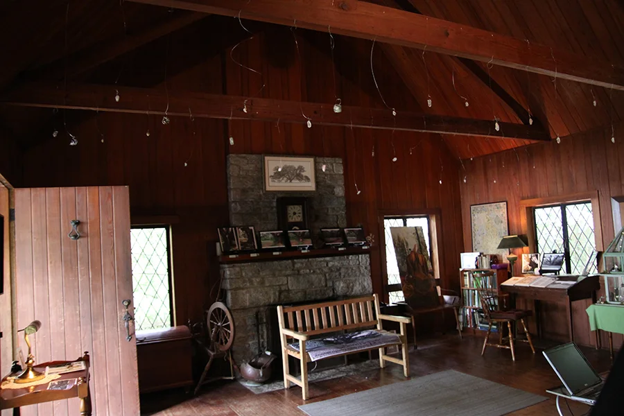 This place represents many firsts in my creative life. It was here that I did my first public installation, and that was the first time the board of directors allowed an artist to interact directly with the surface of the ancient oak tree that is the focal point of this historic homestead museum. I was the first student member to join the Laura Jepsen Institute when I walked up to the Lichgate for the very first time. I felt beckoned to by the beautiful pathway through the trees and walked through the screen of pines to emerge beneath the bowers of a massive and timeless oak tree. I seemed to have fallen through a crack in time next to the bus stop off High Road. A small Tudor style house twinkled on the other side of the glade that housed the great tree and seemed to draw me to it. It was as though I had found an enchanted home that could appear and disappear with the mist. When I walked up the stone steps and in through the open door, a circle of warm-hearted board members said they took it as a sign, as they had just decided to open membership to students.